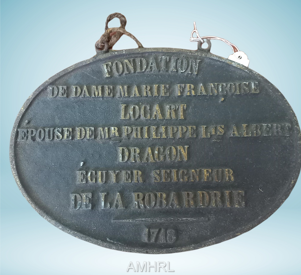 Fondation de Dame Marie-Françoise Locart, épouse de Mr Philippe Lis Albert Dragon, écuyer seigneur de la Robardrie, 1718.