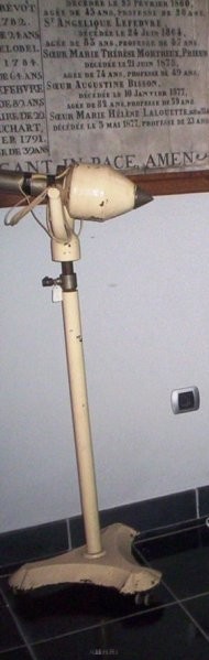 Cet électroaimant géant servait à extraire les corps étrangers intra-oculaire magnétiques. De maniement très difficile en salle d'opération (il date probablement des années 1920), il a été miniaturisé depuis, mais nécessite toujours un repérage radiologique très minutieux au millimètre près. L'apparition du scanner a tout révolutionné.